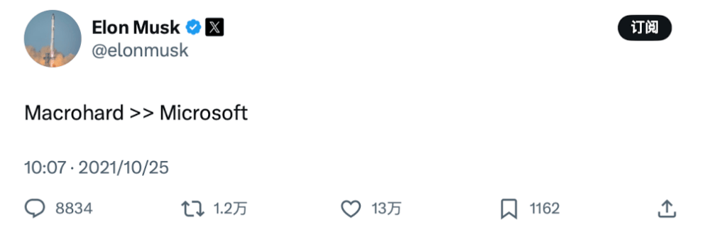 事实上,马斯克对于Macrohard的构想并非突发奇想。早在2021年,他就曾在社交媒体上发布过类似的信息,当时他简单地写道:“Macrohard >> Microsoft”,预示着他对这一项目的信心和期待。
